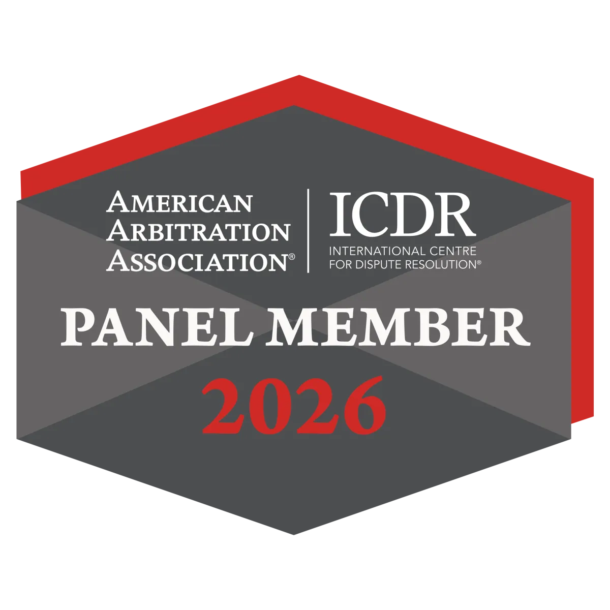 She serves on arbitration panels domestically and internationally before: American Arbitration Association-International Center for Dispute Resolution (AAA-ICDR), Financial Industry Regulatory Authority (FINRA), Federal Mediation and Conciliation Service (FMCS), CPR-ADR, ICC-USCIB, and DeMars & Associates. Ltd. She is also an Accredited Mediator certification with the London, School of Mediation and an IMI Qualified Mediator with the International Mediation Institute. Finally, she is a Member of the Chartered Institute of Arbitrators.